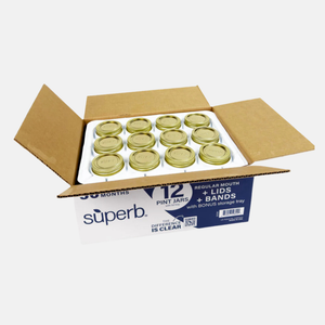 Superb pint canning jars with lids are made in the USA for superior strength, clarity, and thermal shock resistance. Each 12-pack includes lids and bands, making it easy to preserve, store, or gift your favorite foods. Durable and reliable, these jars deliver consistent results for both home and commercial canning projects.